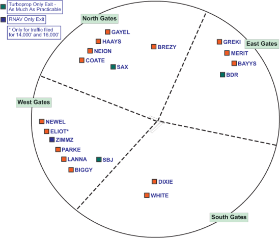 - BREZY is only a valid exit if either followed by V39 CMK GREKI/MERIT/BAYYS/BDR or when the destination is within the LaGuardia sector of N90 (i.e. LGA, HPN or DXR).