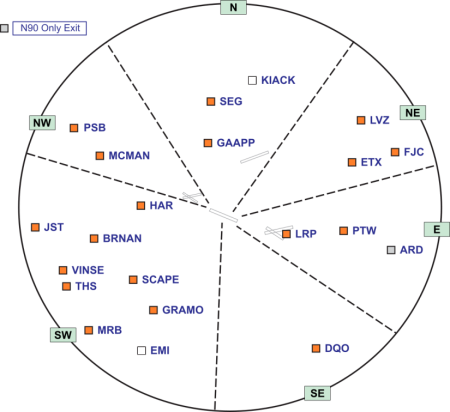 1. While strict exit direction points are not required at LNS, the guide above may come in handy for directing pilots to proper exits for departing the area.