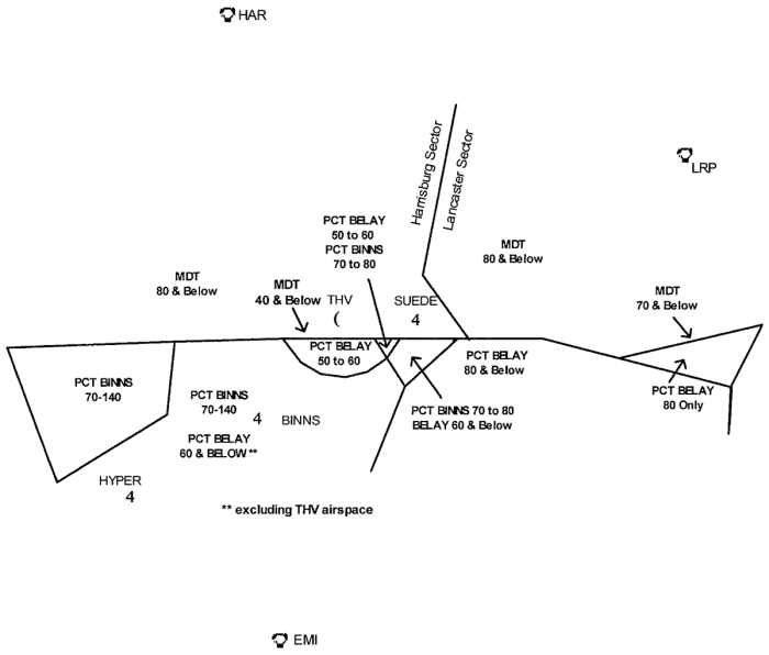 Note: Traffic may be routed direct to EMI, BAL, or HAR without prior coordination at or below 6,000'. Traffic may be routed direct MTN or LRP or LRP direct BAL without prior coordination at or below 8,000 feet.