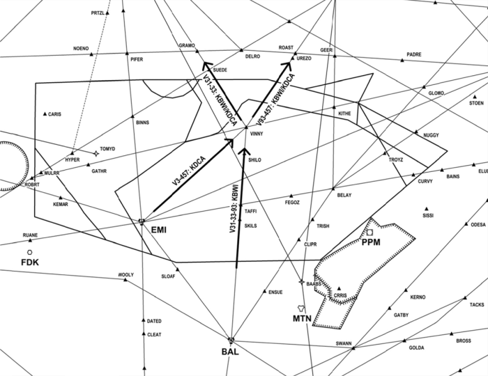 - Jet arrivals from MXE will be handed off to PCT to cross CLIPR or cross 20nm Northeast of BAL at 12,000′.