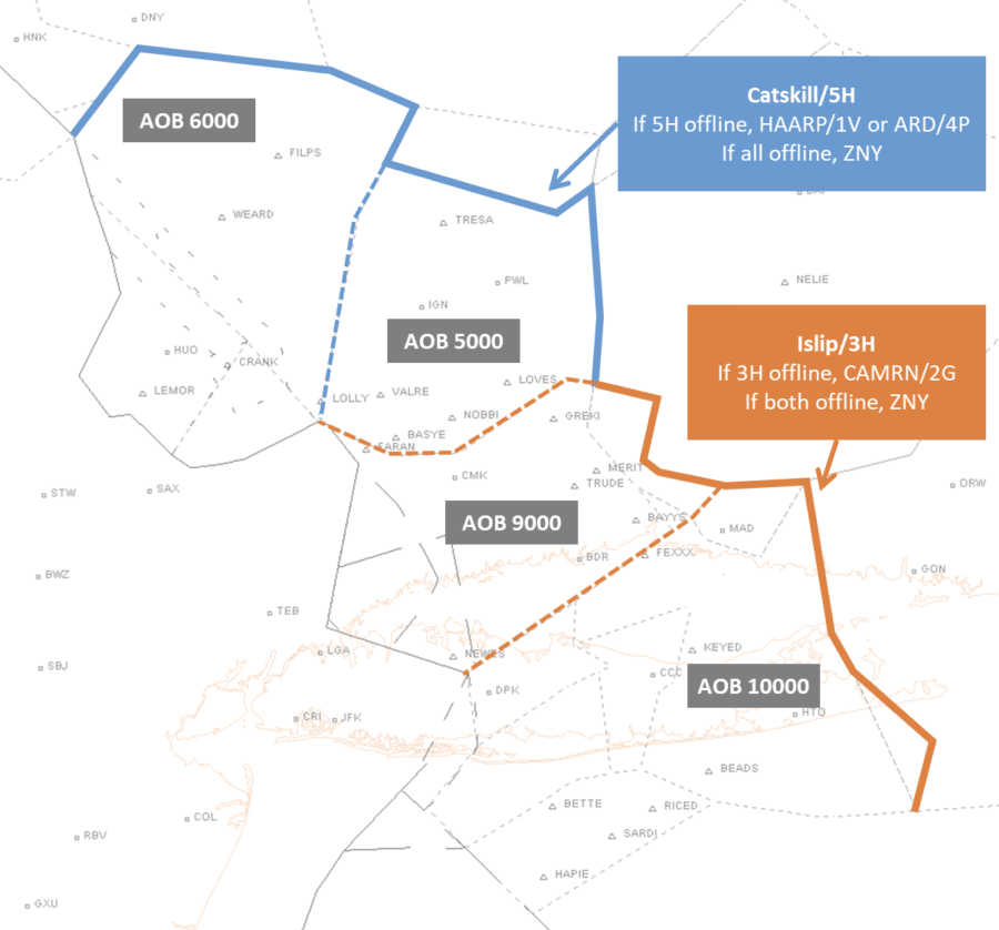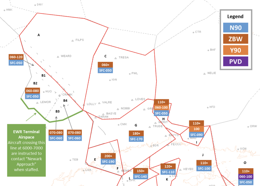 • When the airspace is controlled top-down by ZNY: “New York Center”.