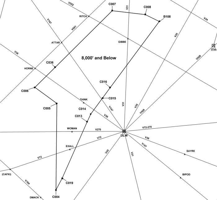 All Airports North of ULW270 radial HNK V167 WEARD V489 COATE Jets: At or below FL310