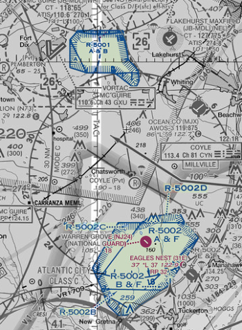 Restricted Area R-5001 is approximately 1 mile east of McGuire airport and approximately 4 miles west of Lakehurst airport. Restrictions are as follows:
