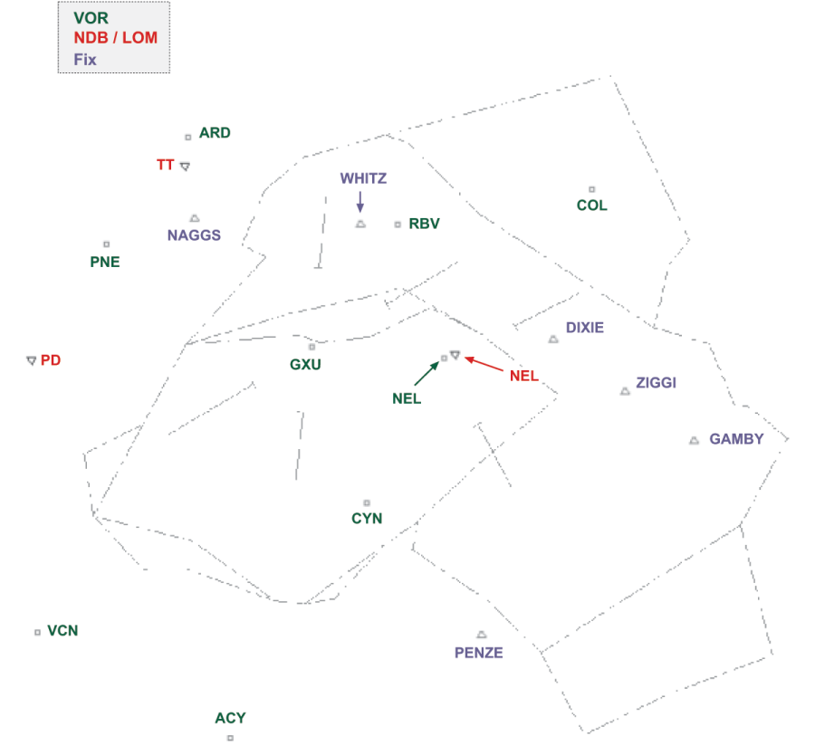 • Exit fixes that are shown in grey can only be used for KWRI departures and they are only acceptable if used as transitions from the proper SID.